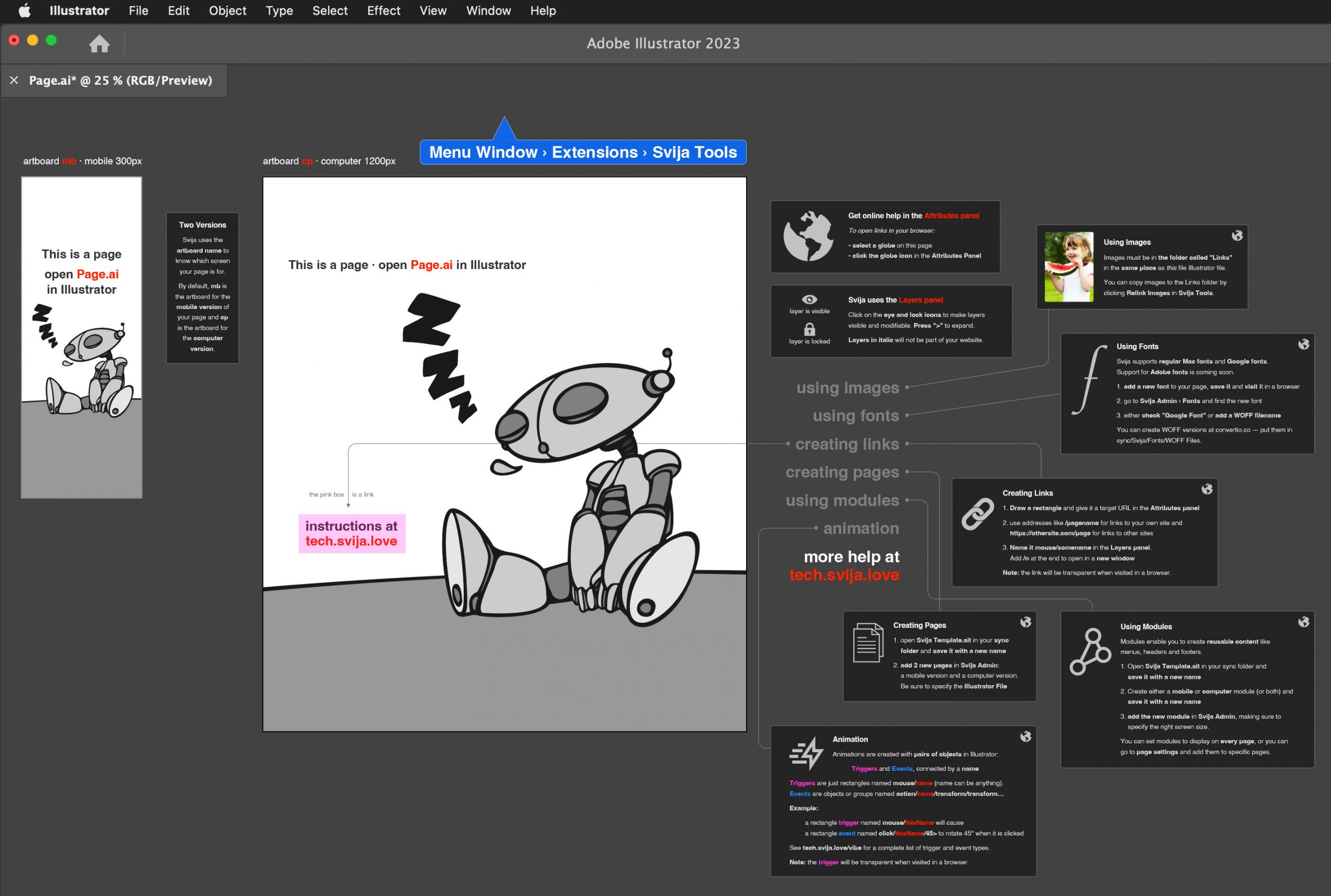 The page is simple, and when you open it in Adobe Illustrator, you’ll find help content right in the file:
